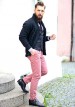 華やかなピンクパンツが逆に新鮮な、黒ショールカラーカーディガンにピンクパンツを合わせた着こなし。 「ピンクパンツで一気にハズシている」所が最大のポイントですね。 タイドアップのネクタイはあっても無くてもいいですが、上品に映るショールカラーやジレ、そしてモンクシューズがある…