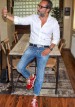 【50代男性】白シャツ×ジーンズ×赤スニーカーの着こなし