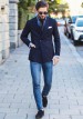 【秋】紺ダブルジャケット×ブルージーンズの着こなし