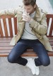 きれいめなベージュトレンチコートに、ビンテージ感の強いダメージジーンズを合わせた着こなし。 今までだとダメージジーンズはちょっと…。という流れでしたが、2015年は「デニム素材」がトレンドなので、こんなダメージ系ジーンズも今季ならアリです。 カジュアルなシューズやダメージ…