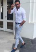 なるほど、こうきたかと思わせてくれるジャケットコーディネート。 ネクタイ+チェックシャツという点は日本ではちょっと難しいかもしれませんが、デニム+ローファーという組み合わせが新鮮かつ「カジュアルオシャレ」に効いています。 足元はロールアップ、そして薄いブルーデニムという点…