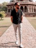 ストライプシャツ&白パンツを合わせたキレイめな印象はもちろん、色味が明るいことで重たさ、暑苦しさを払拭しています。